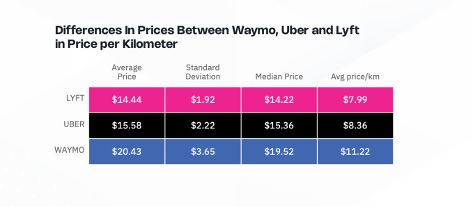 Waymo costs mo: New data suggests that Waymo rides in San Francisco cost more than the Uber or Lyft equivalent. Anecdotally, I would say that Waymo’s Jaguar is a much nicer vehicle than the car you’d get on an UberX or standard Lyft ride, so it might be more fair to compare these to each brand’s upmarket selection.