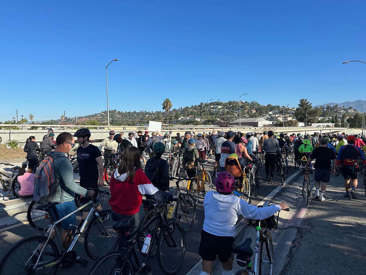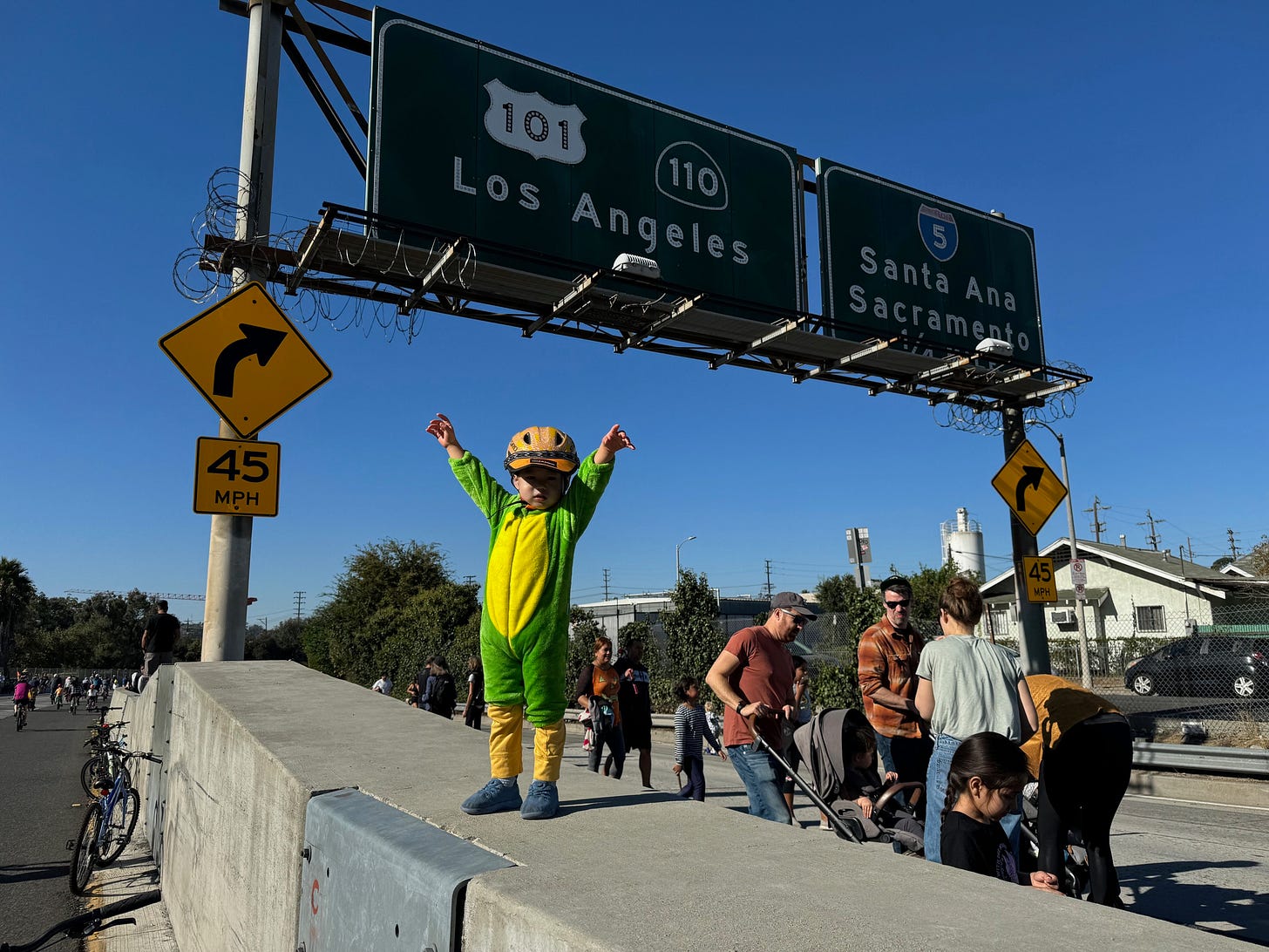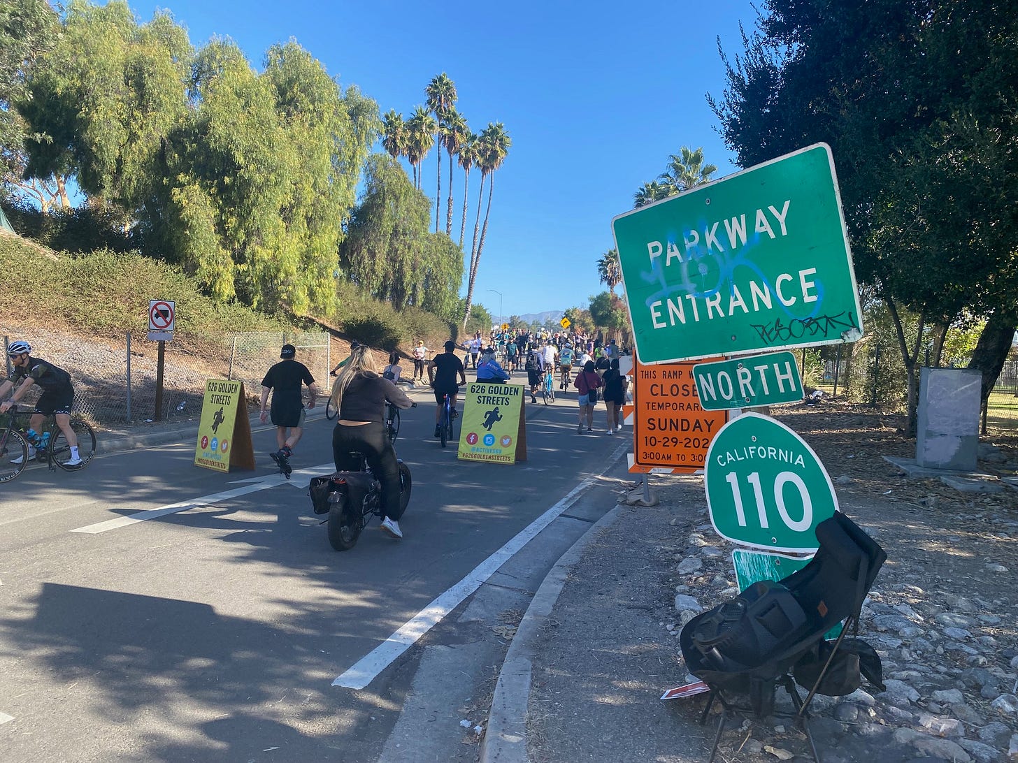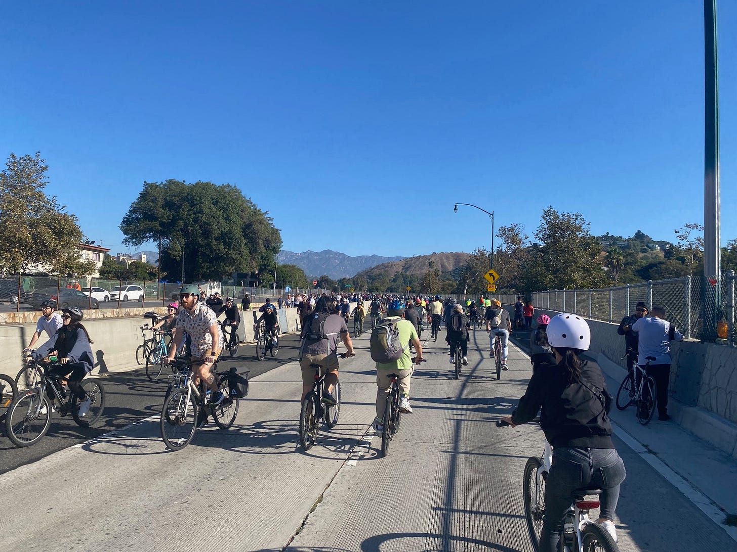 This past Sunway made for a very special event in Los Angeles, as the 110 freeway was closed to cars and opened to people on bikes, scooters, feet and all sorts of other mobility devices. It was a return to form for an event originally held twenty years ago, but also marked the route reverting to an even older purpose — before it was one of the country’s first freeways, the Arroyo Seco Parkway’s course was the California Cycleway, an elevated wooden trestle for bikes.