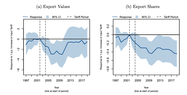 Tariffs are stupid! New economic research proves out that tariffs have a negative effect on domestic employment. Looking at the early 2000s steel tariffs enacted by President Bush, economist Lydia Cox found that there were more job losses among U.S. steel users than there were gains from U.S. steel manufacturers. Doy.