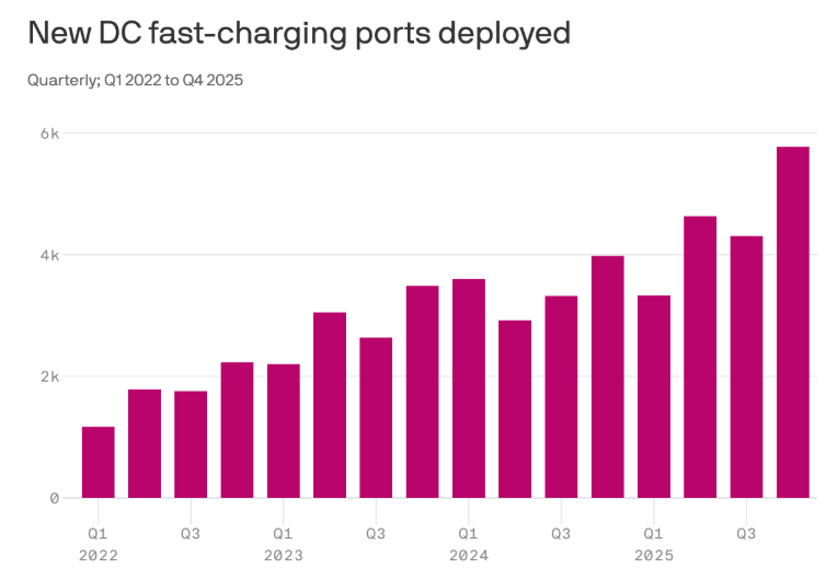 Plugged up! Good news for anyone with an EV, as America’s fast charging network continues to grow. The U.S. now has just over 70,000 public fast-chargers, with 18,000 new ones coming online last year. Tesla Superchargers represent 52% of the market, but the competition is quickly catching up.