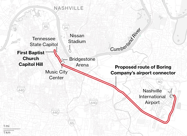 As above, so below: Elon Musk’s Boring Co has reached an agreement with Tennessee to bore below Nashville, connecting the airport with the downtown convention center zone. Skeptics point out that the company’s aggressive timeline sounds unrealistic for Music City’s ground conditions, and the supposed throughput would require wild vehicle operating speeds for a course that has a big 90 degree turn in its middle. Up in the sky, Musk’s ambitions are far more modest: he merely wants to put launch thousands of orbital data centers. Oh and at ground level his company town in Texas is getting its own police department; nothing to worry about!