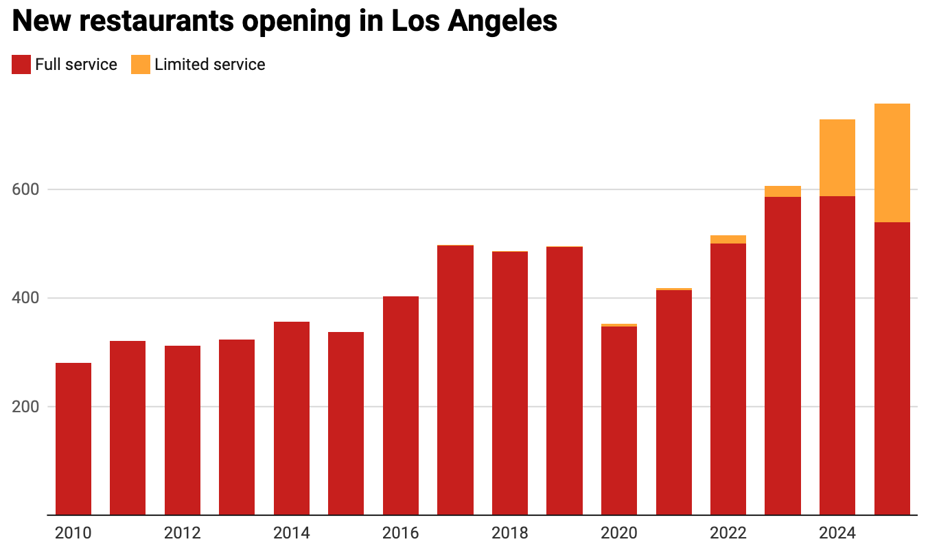 What IS a restaurant? Given the rough economy, you’d think that restaurant openings in Los Angeles are falling. That’s true if you think of a restaurant as place you can sit, order from a human, and enjoy your meal. But if you include “limited service” restaurants, think delivery-oriented ghost kitchens, new restos are actually at an all time high. But when one address can technically host dozens of “restaurants,” it’s tough to say what the real number is any more…